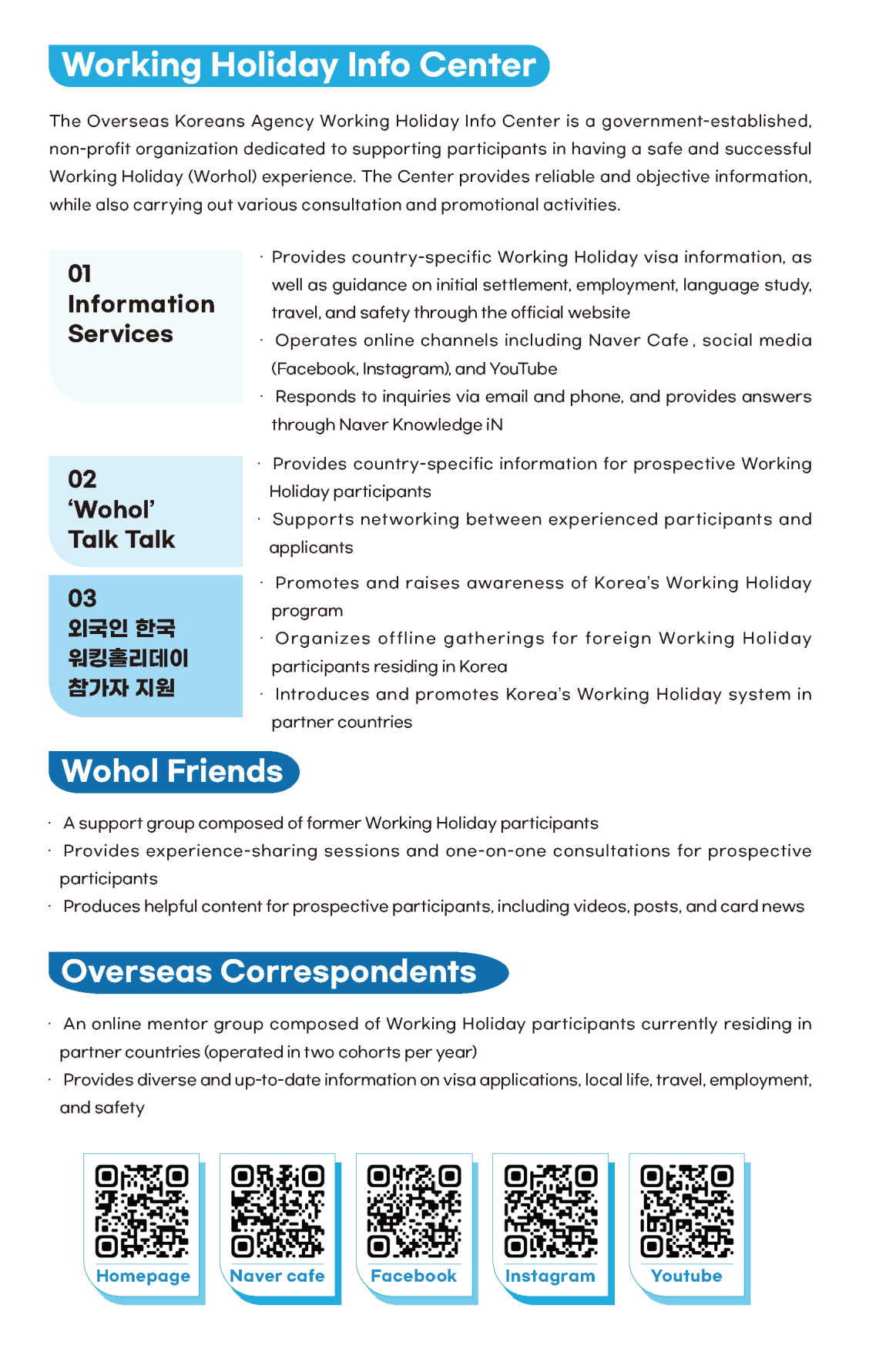 Nous sommes le Centre d’information sur le Programme Vacances-Travail de l’Administration des Coréens d’outre-mer.